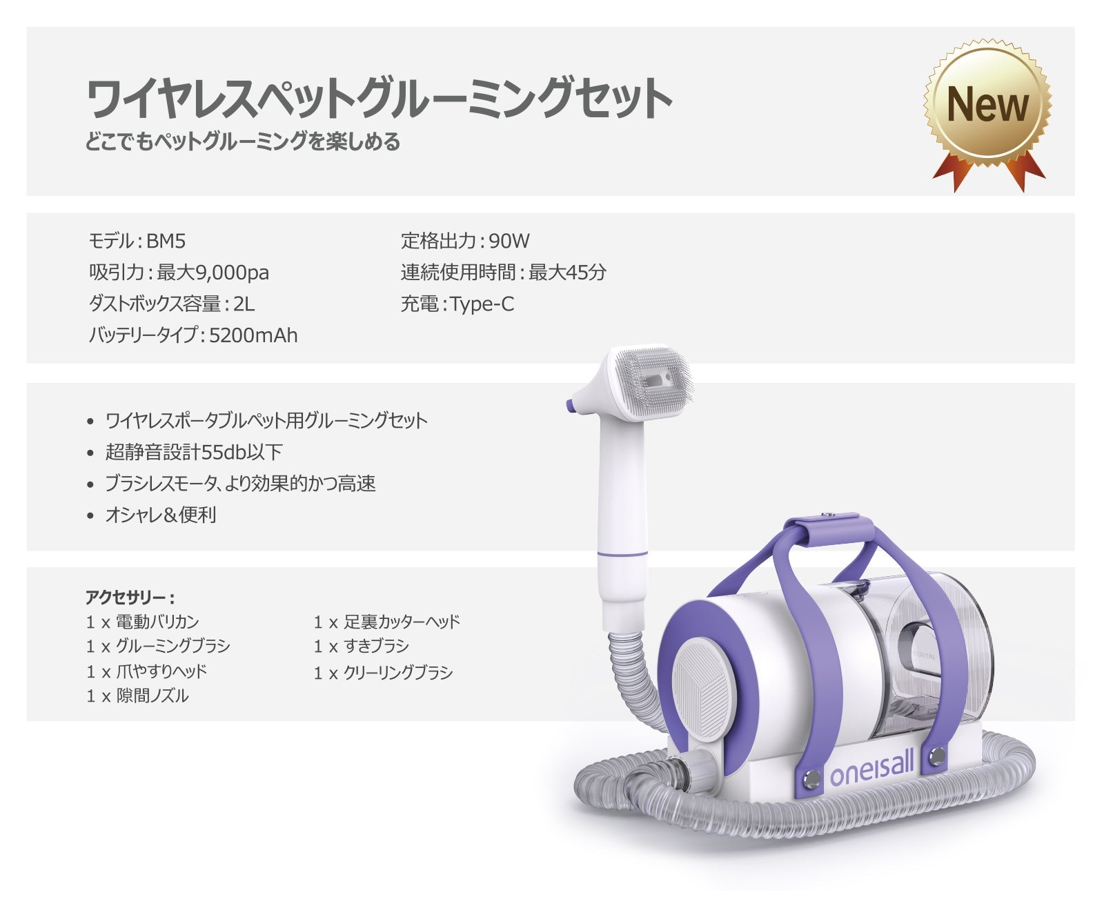 - 1x Oneisall BM5 draadloze kit / stofzuiger voor dierenverzorging